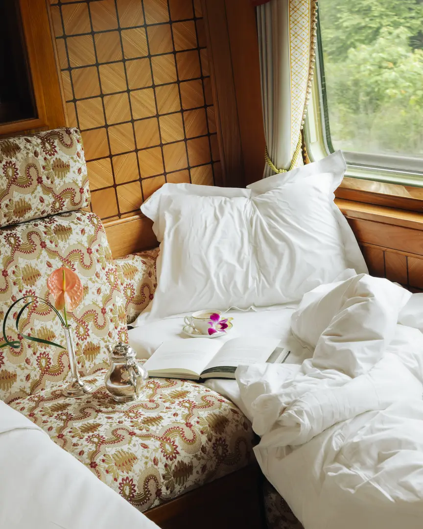 Tåget utstrålar klassisk charm med sina mörka träpaneler, mjuka sammetsgardiner och noggrant utvalda detaljer som speglar regionens historia och kultur. Ombord väntar rymliga sviter med stora panoramafönster, bekväma sängar och privat badrum, där varje detalj är utformad för att erbjuda maximal komfort och avkoppling. Dagarna ombord växlar mellan att njuta av tågets sofistikerade atmosfär och spännande utflykter till lokala sevärdheter.